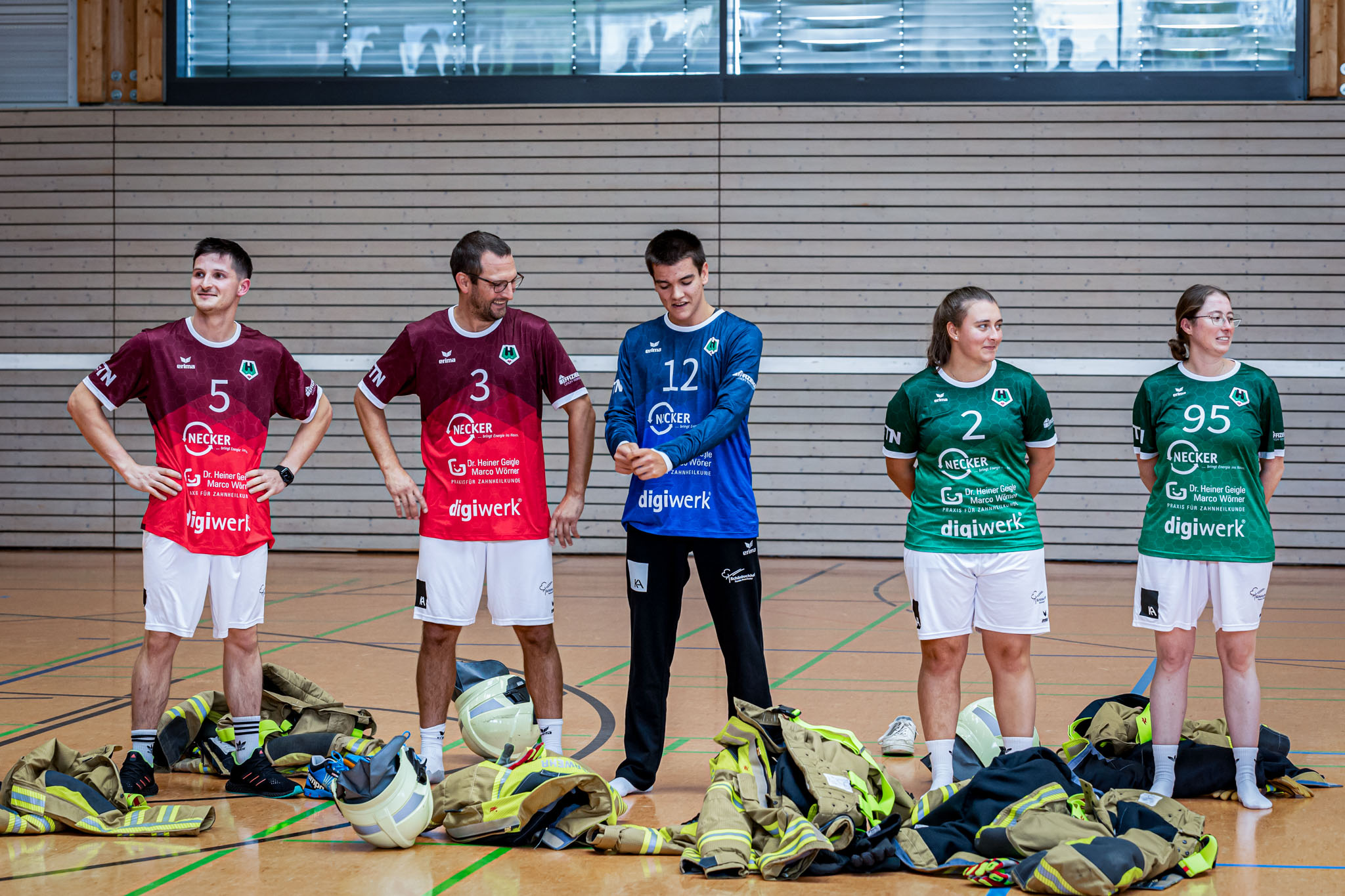 Das Highlight war sicherlich das Promi 7-Meter-Werfen, bei dem neben zahlreichen Sponsoren sogar Fr. Höflinger selbst mitmachte. Den Titel musste sie allerdings Gottfried Wandel überlassen, der sich im Finale knapp gegen Dr. Heiner Geigle durchsetzen konnte. Langjährige Erfahrung ist eben einfach durch nichts zu ersetzen. Kurz darauf wurde die Feuerwehr gerufen, die die brandneuen Trikots vorstellen durfte. Das Design stammt aus Vereinsfeder und sorgt international in der Modewelt für Aufsehen. Giogio Armani spricht von einem Meilenstein der Trikotdesigngeschichte und hat bereits für eine Kooperation angefragt. In Kürze wird es die Trikots für den gemütlichen Handballabend im heimischen Wohnzimmer im Shop zu bestellen geben. That is lit!